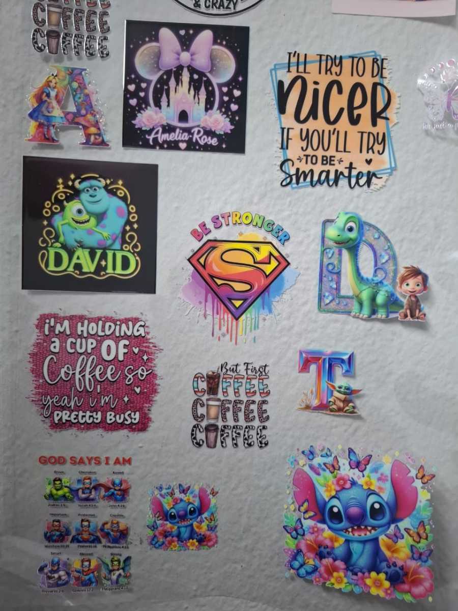 UV DTF is simple to apply, you just need to peel and place it down, weeding is not necessary. These stickers are vibrant, scratch resistant and waterproof.